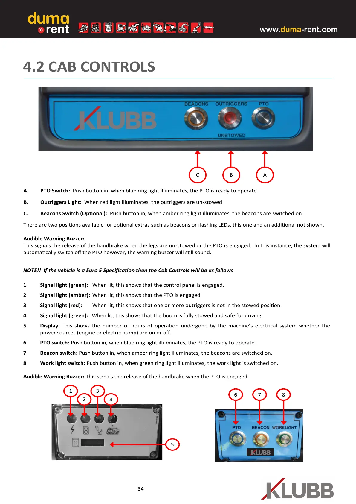 NOTE!! If the vehicle is a Euro 5 Specicaon then the Cab Controls will be as follows
