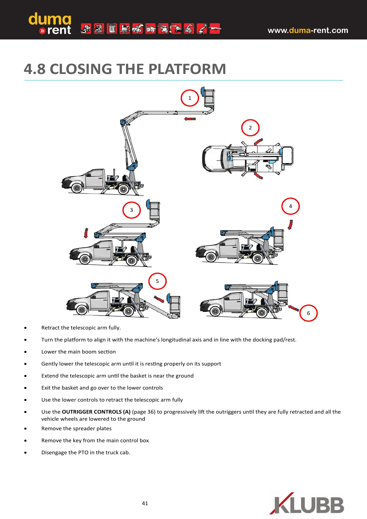 • Use the OUTRIGGER CONTROLS (A) (page 36) to progressively li the outriggers unl they are fully retracted and all the