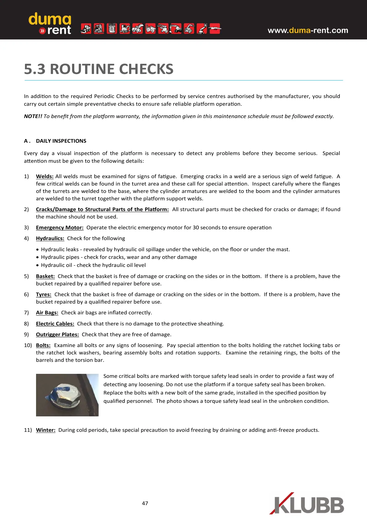 NOTE!! To benet from the plaorm warranty, the informaon given in this maintenance schedule must be followed exactly.