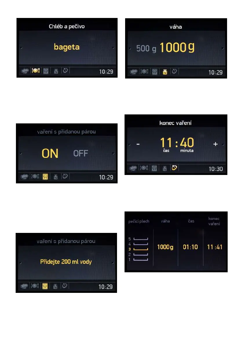 • Zvolený čas ukončení pečení nastavte