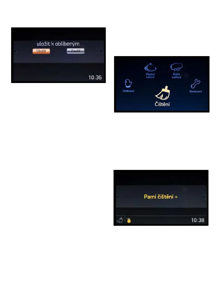 Stisknutím pravého voliče zvolte „"Parní čištění"“.