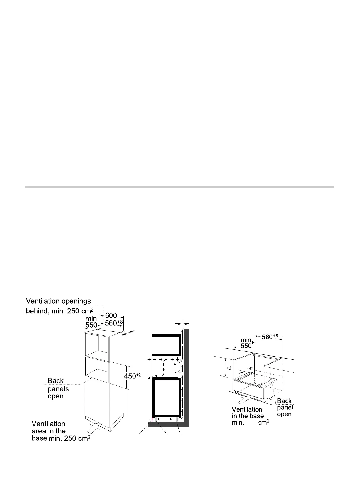 The fitted cabinet must have a ventilation opening of 250 cm