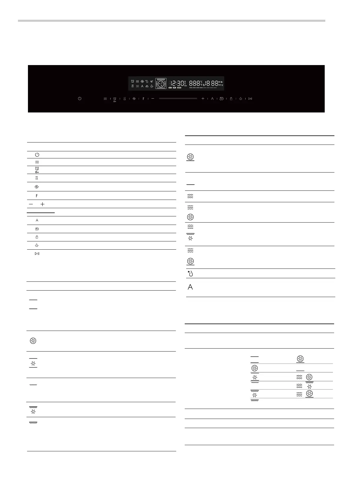 Use the function keys to set the type of cooking.
