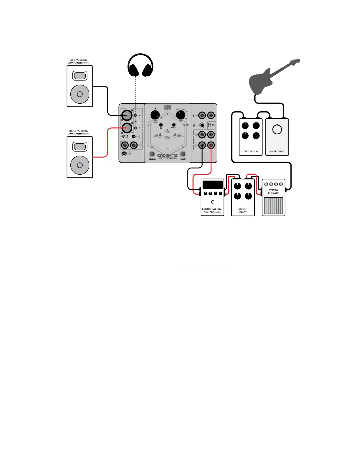 If you wish to connect a stereo device – such as a stereo Amp/Cab Sim or synth etc. – directly to