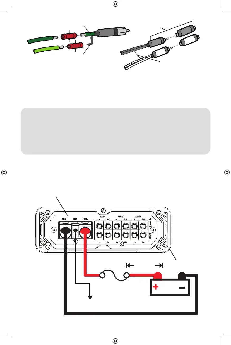 raccordé à votre amplifi cateur. Utilisez uniquement les kits de câblage KICKER KMPK ou d’autres