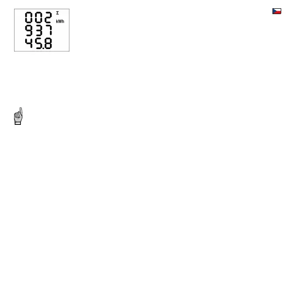 • ΣEP- … třífázová činná energie dodaná (export), označená Σ - kWh a předřazeným znam. ―