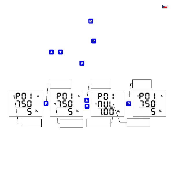 vedlejší větve skupiny parametrů se lze přepnout stiskem tlačítka . Při přepnutí do vedlejší větve se pomlčka předřazená