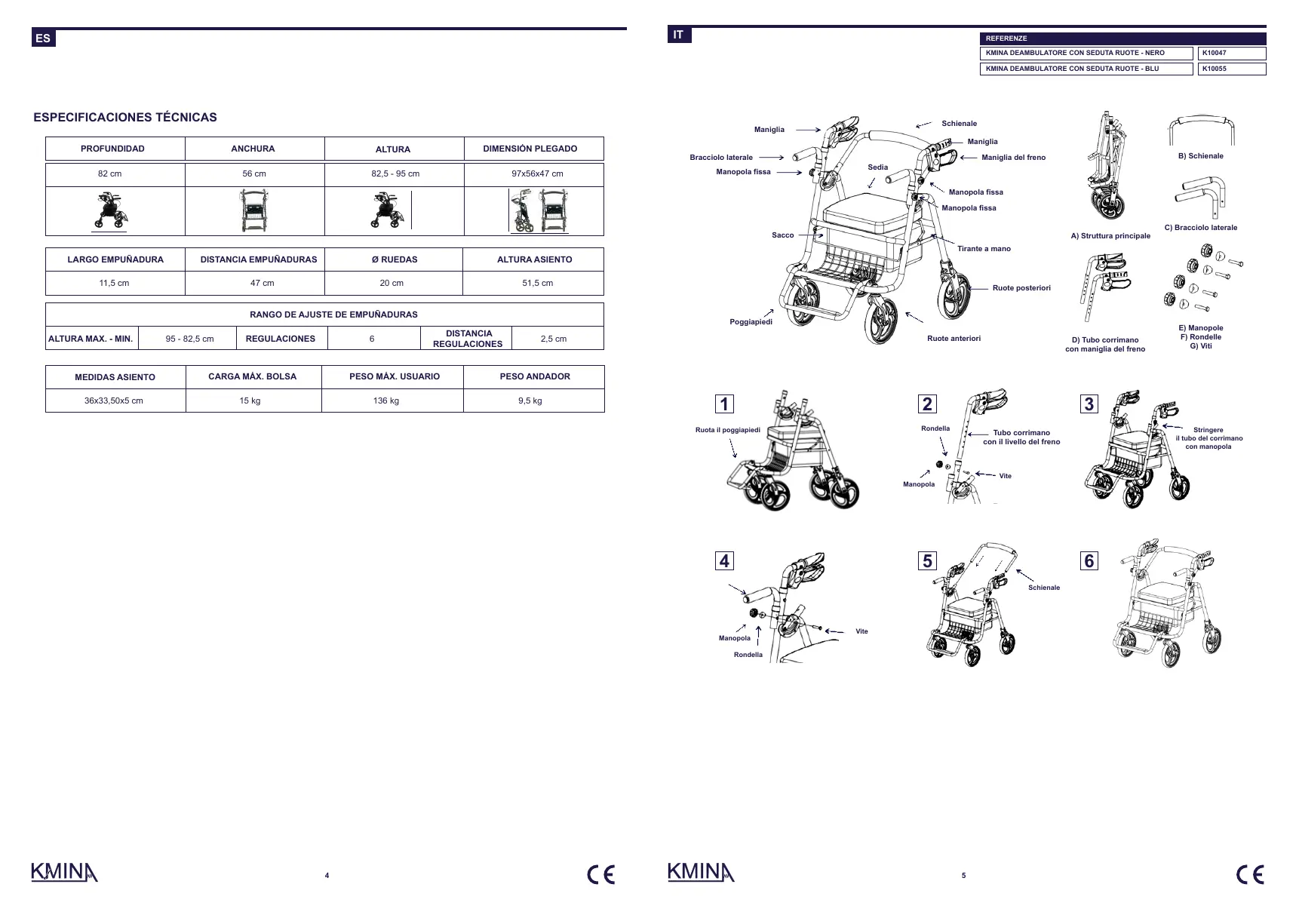 Il KMINA DEAMBULATORE CON SEDUTA RUOTE è progettato per fornire supporto e assistenza a coloro che non possono o non hanno la sicurezza di