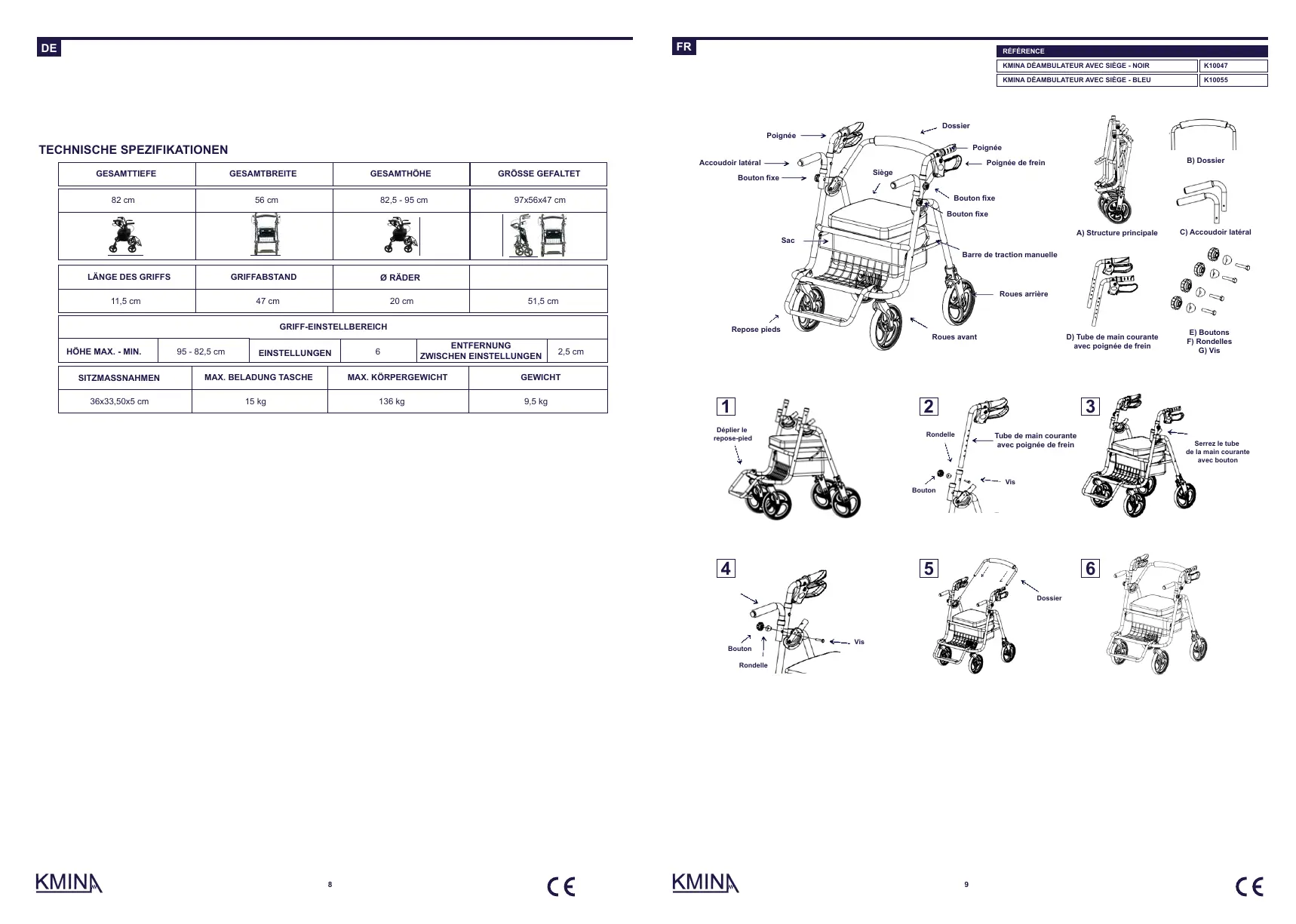 ■ KMINA garantiert, dass der Rollator frei von Material- und Verarbeitungsfehlern ist. Die Garantie gilt für 2 Jahre ab dem Datum des