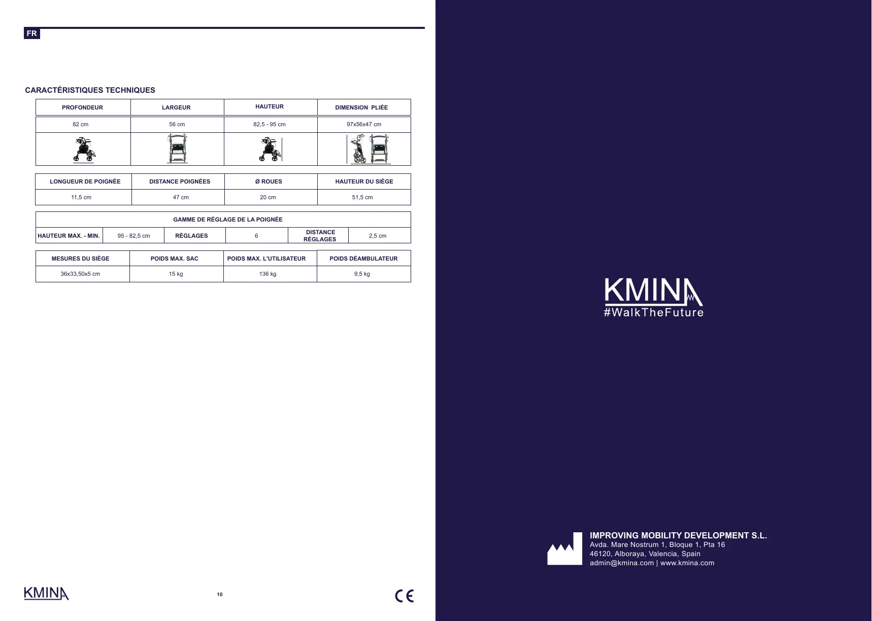 ■ En cas de retour, emballez correctement le déambulateur, de préférence dans son emballage d'origine, sinon KMINA ne sera pas responsable des éventuels