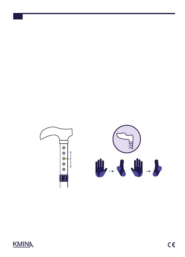 Sie die Stockhöhe so ein, dass der obere Teil des Griffs den inneren Teil des Handgelenks berührt.