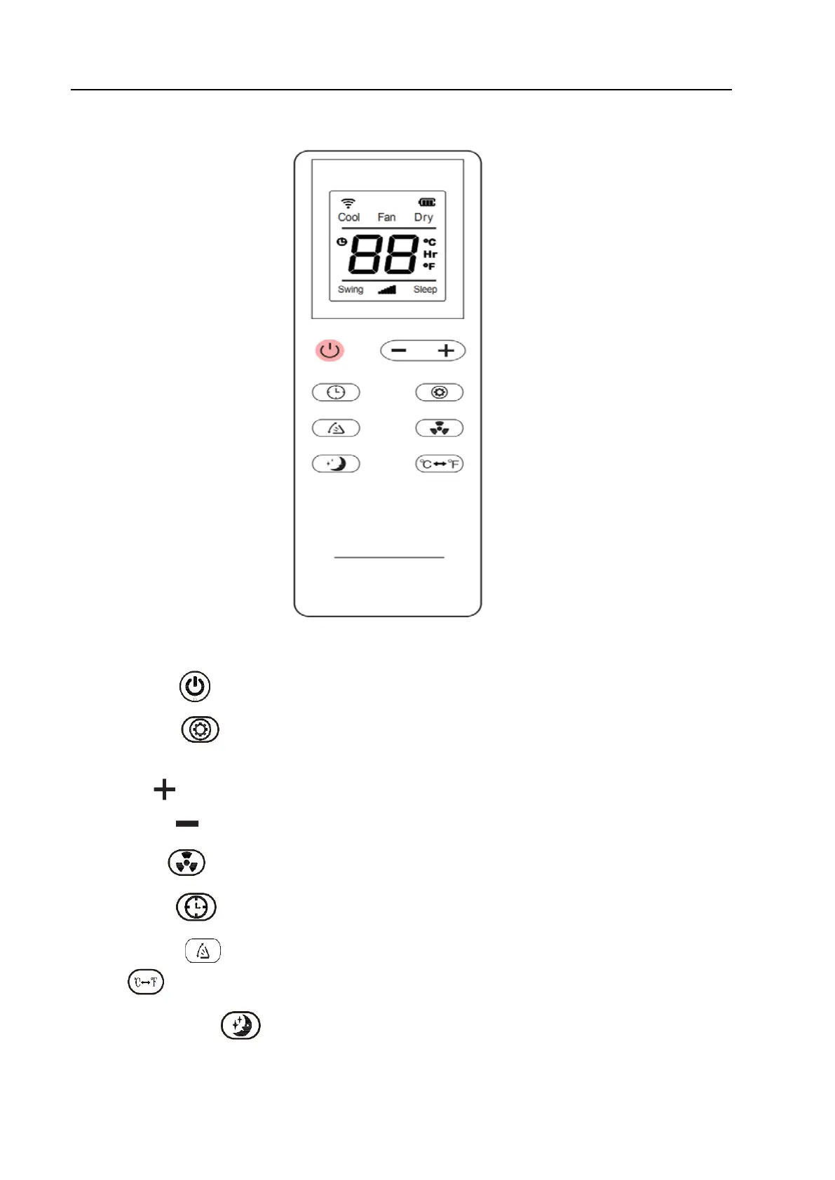 5. Fan: press the key to select high, medium, and low wind speed output circularly.