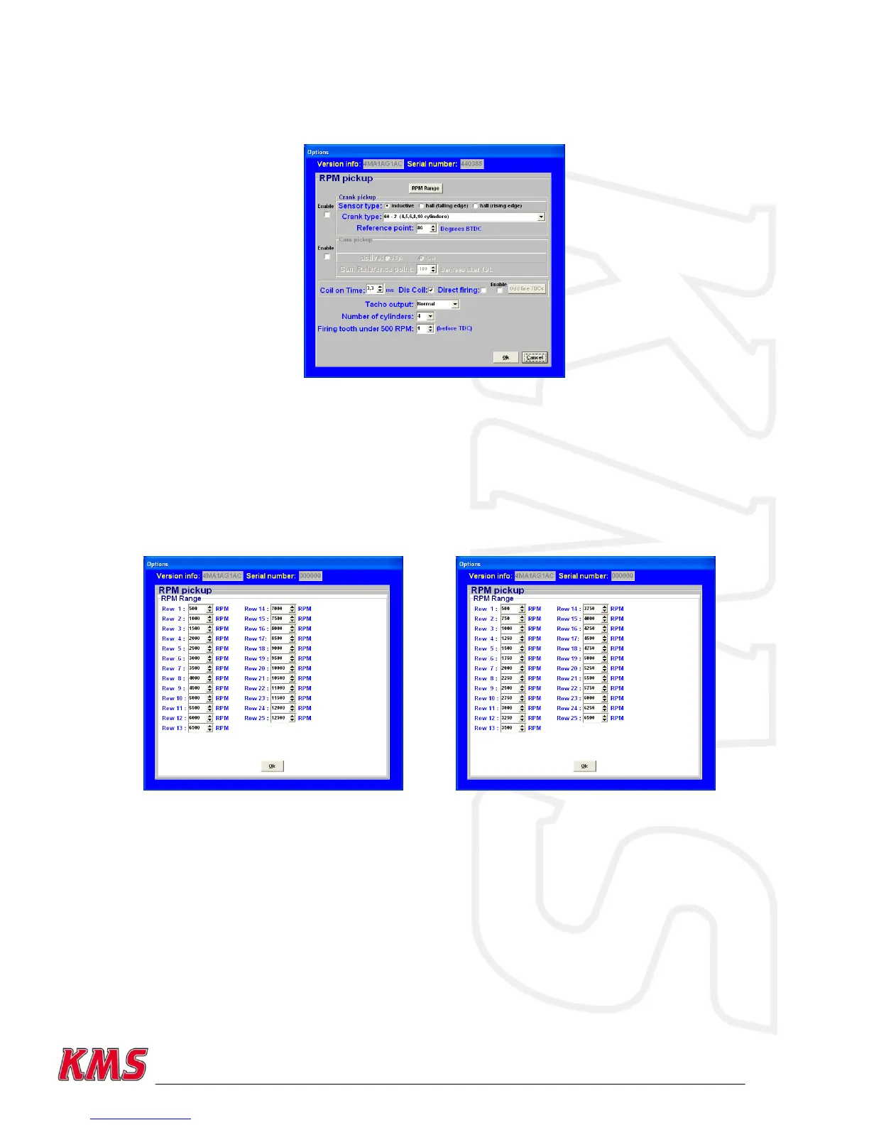 Standard the 25 rows are divided over a rpm range 12.500 rpm (example see left figure below). If
