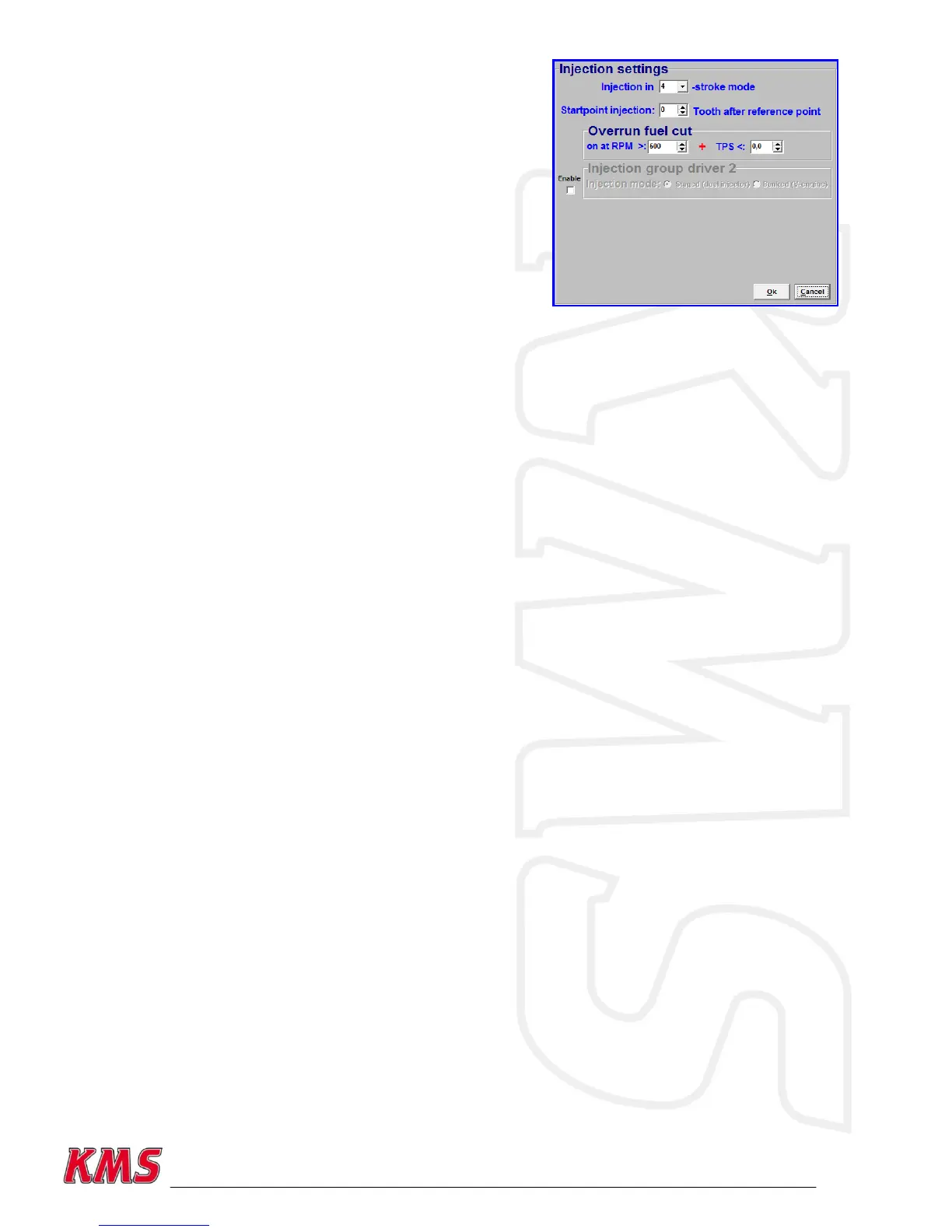 The starting point of the injection cycle can be set here in number of tooth after the set reference