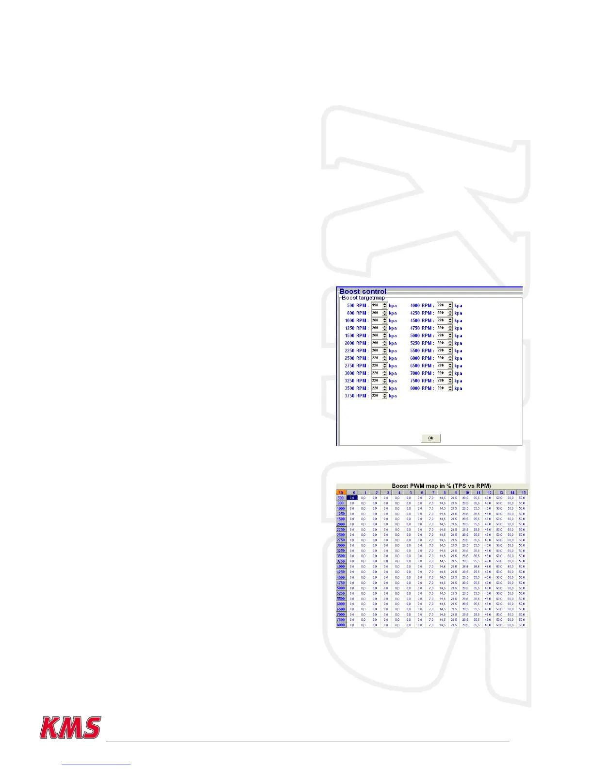 Via this menu you can enter target boost pressures for