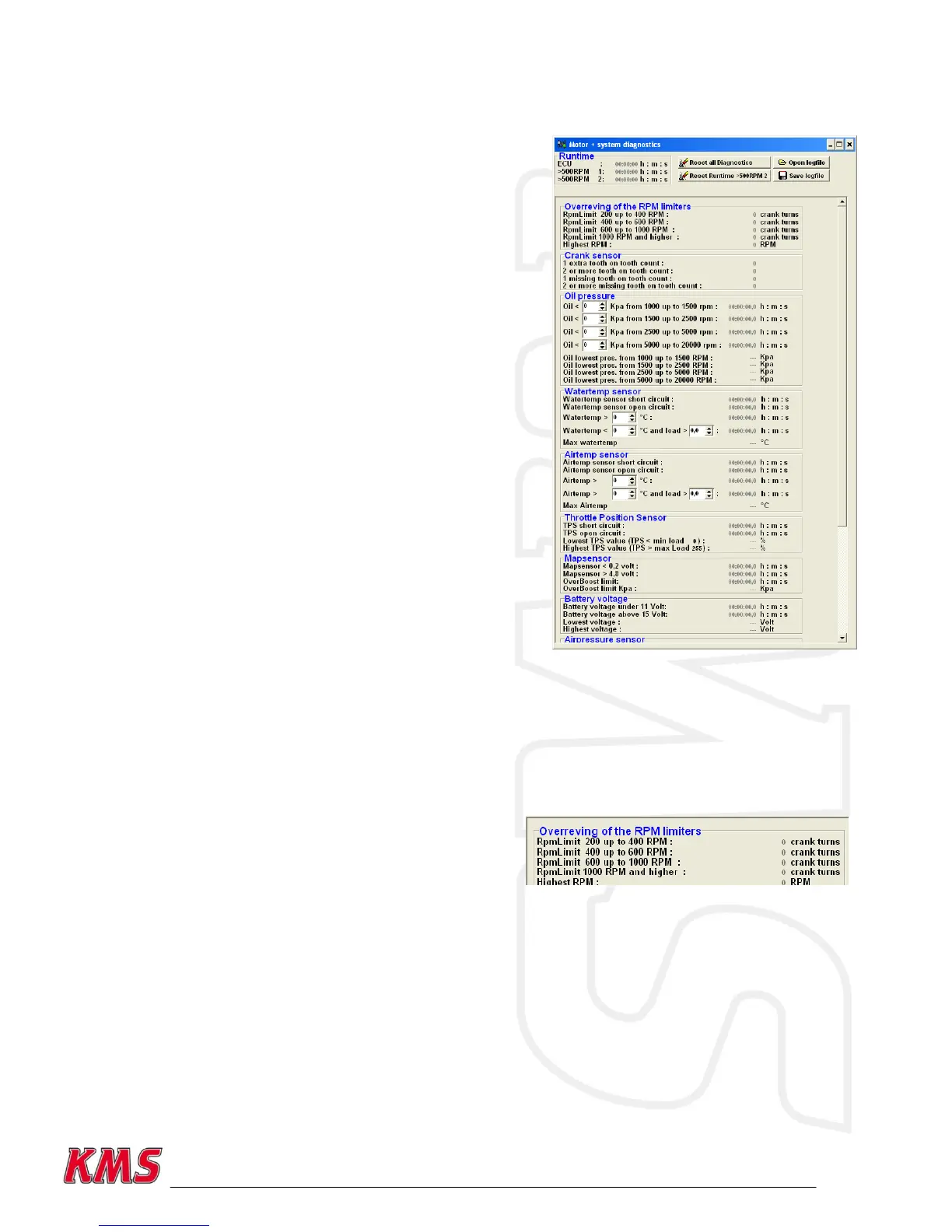 Rpm limit 400 up to 600 rpm shows how many crank turns the engine exceeded the limiter by 400