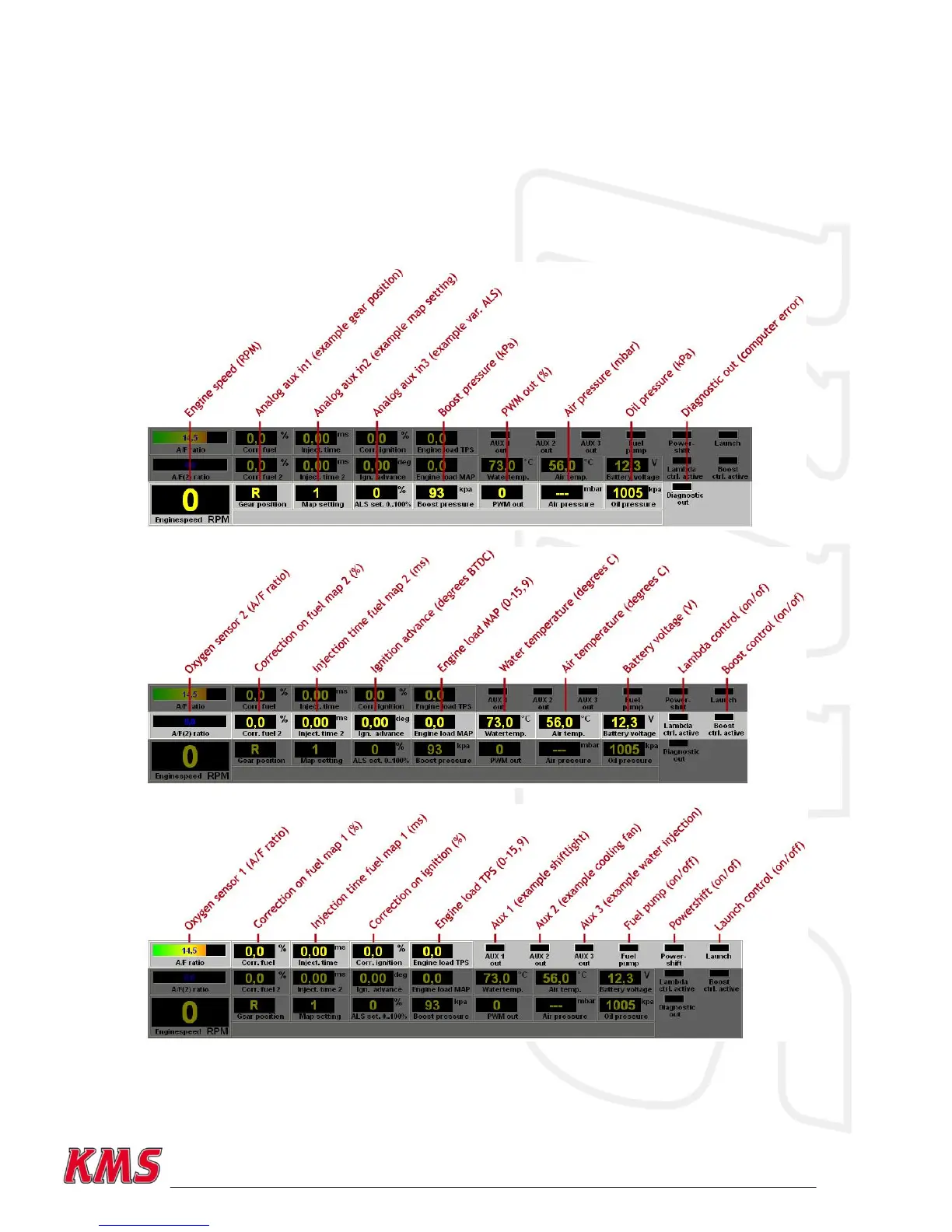 These readings can be used to check whether the right sensors are being used and all settings are