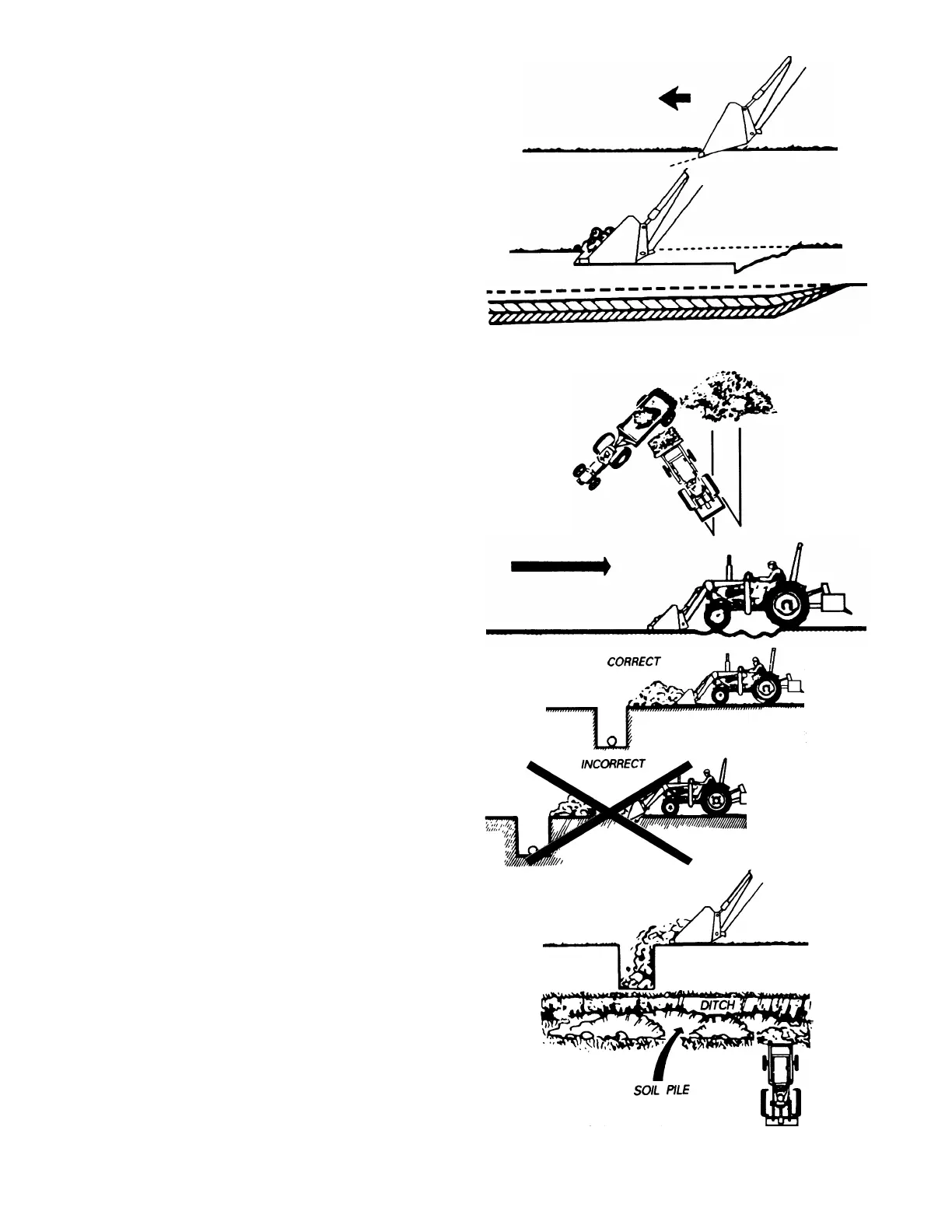 Operate at right angles to the ditch, taking as big a bite