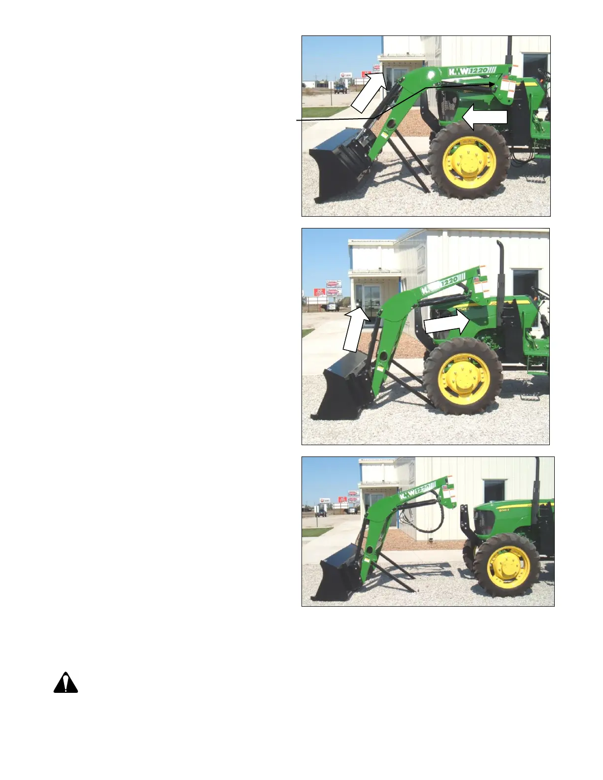 WARNING: Make sure parked loader is on a hard level surface. Engage all safety devices to
