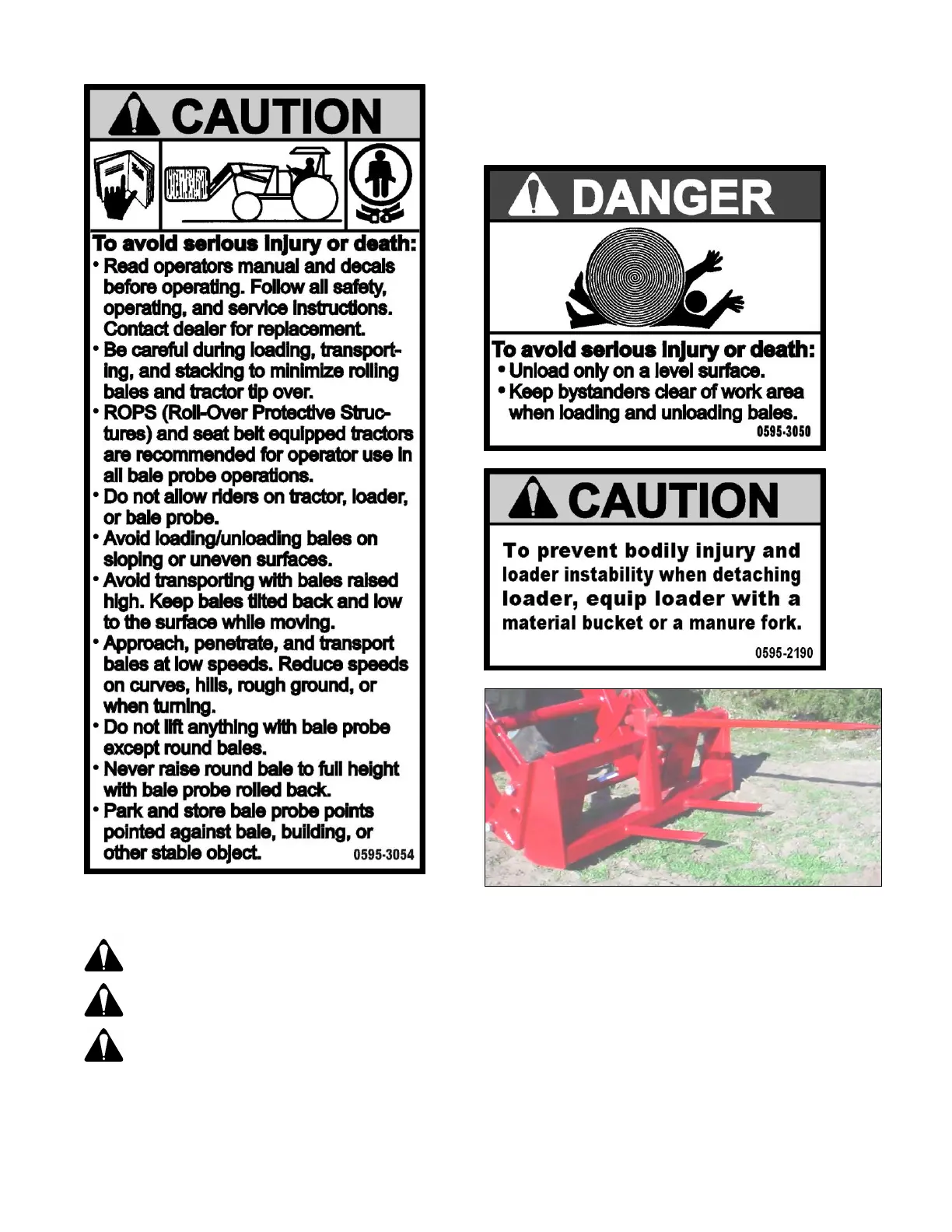 CAUTION: To prevent bodily injury, park and store bale spear with points pointed against bale,