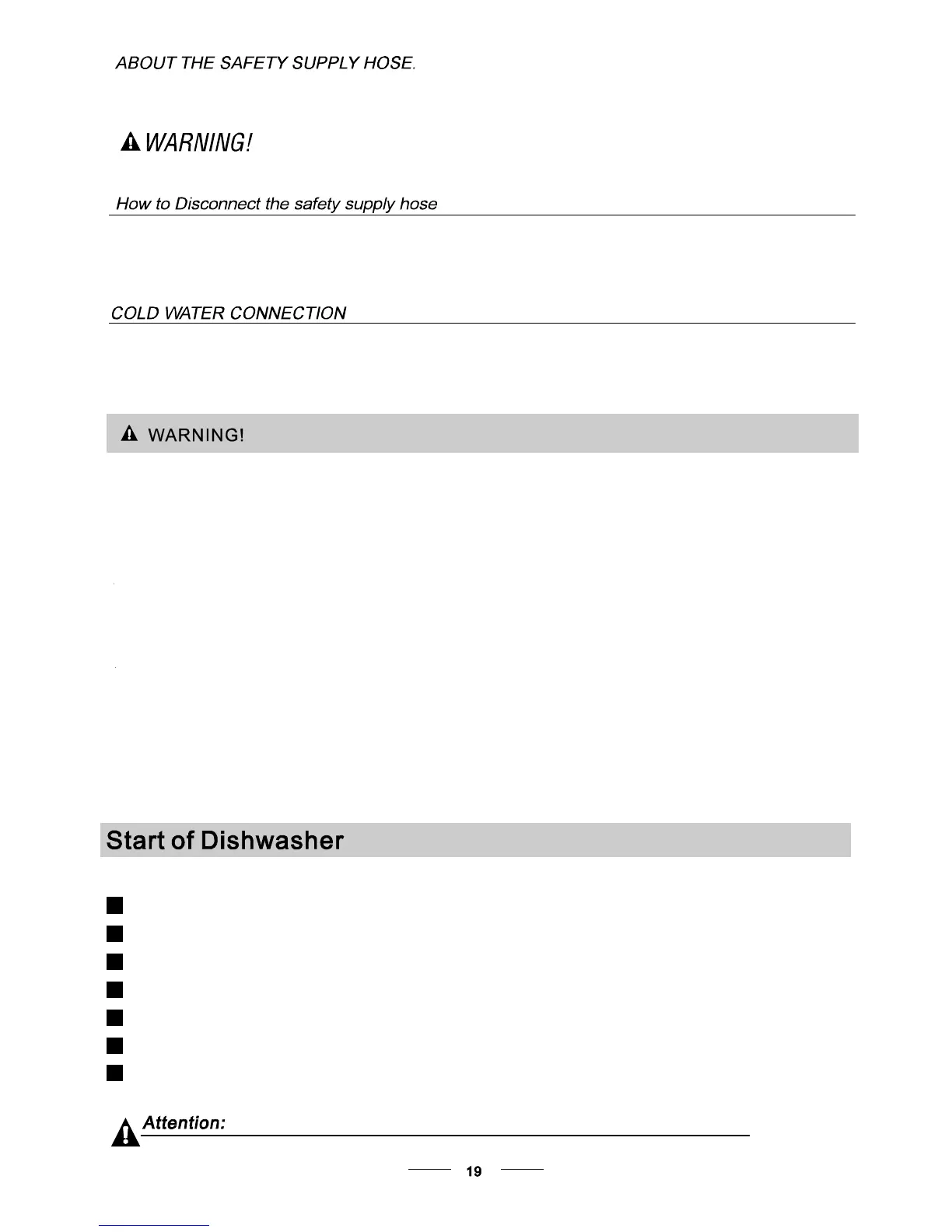 The following things should be checked before starting the dishwasher.