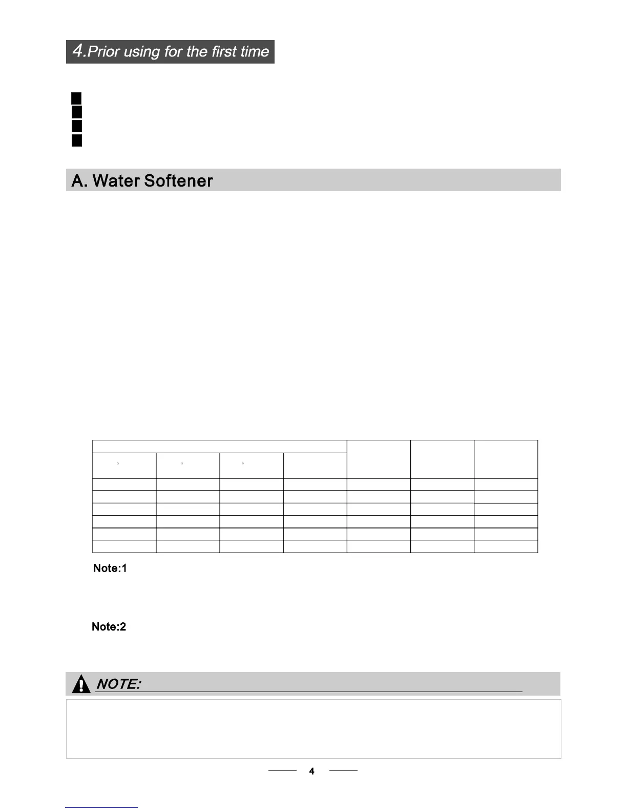 The so ftener sho uld be a dj usted acco rding t o the hard ness of t he wate r in you r ar ea. Your lo cal WaterAuthor ity