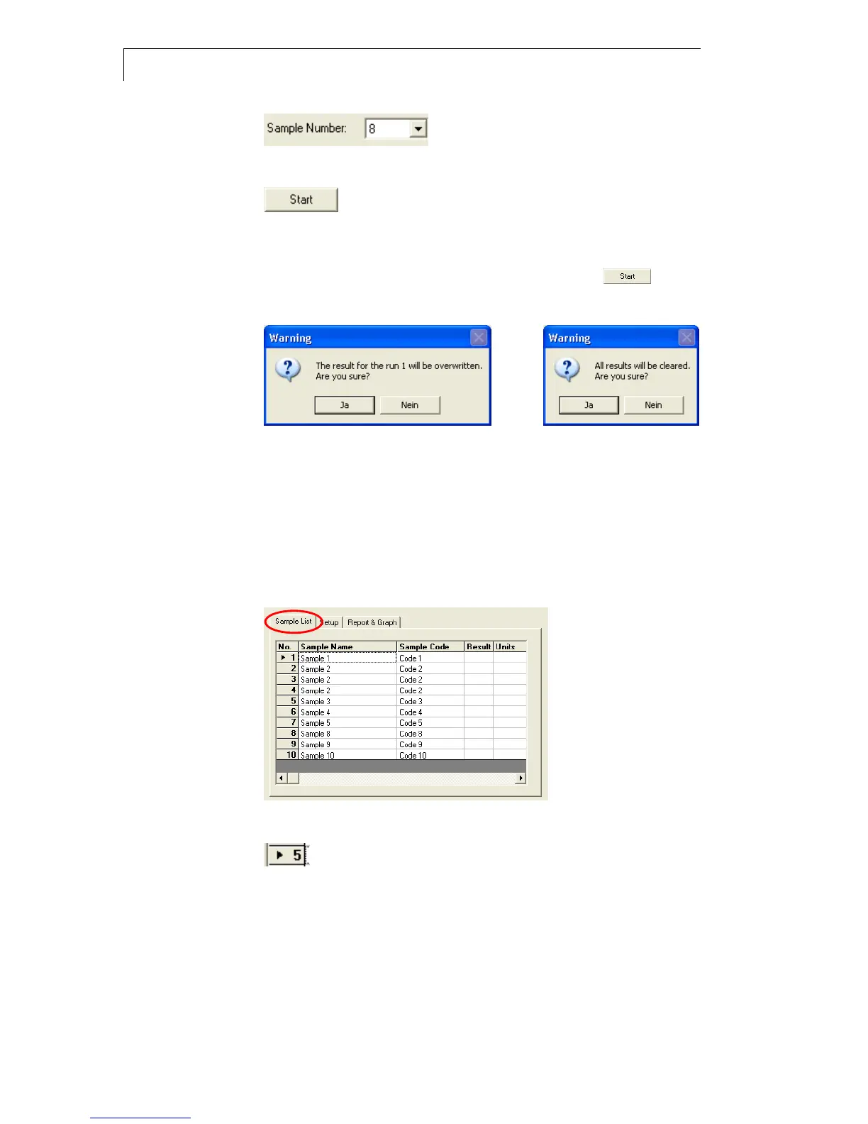Sample List Die Liste dient der Bezeichnung und Codierung