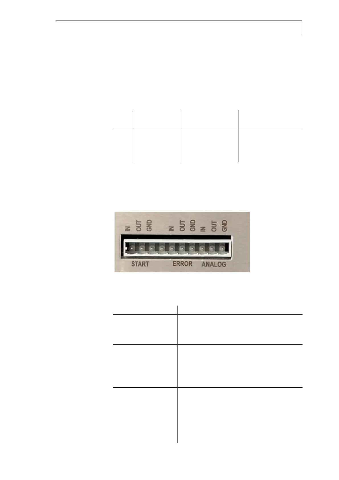 The Analog/Error/Start terminal strip serves to send/receive either start or