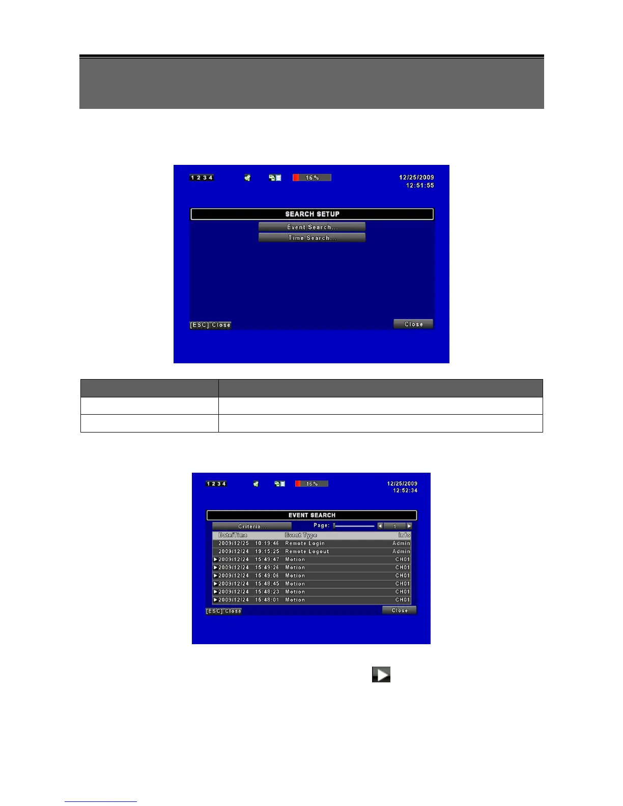 The DVR automatically records events with type, time and channel information included.