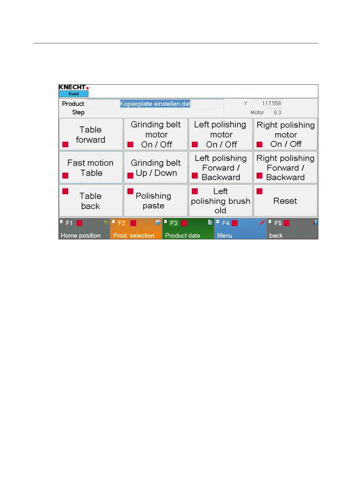 13 “F1 Home position”: Moves the table to home position