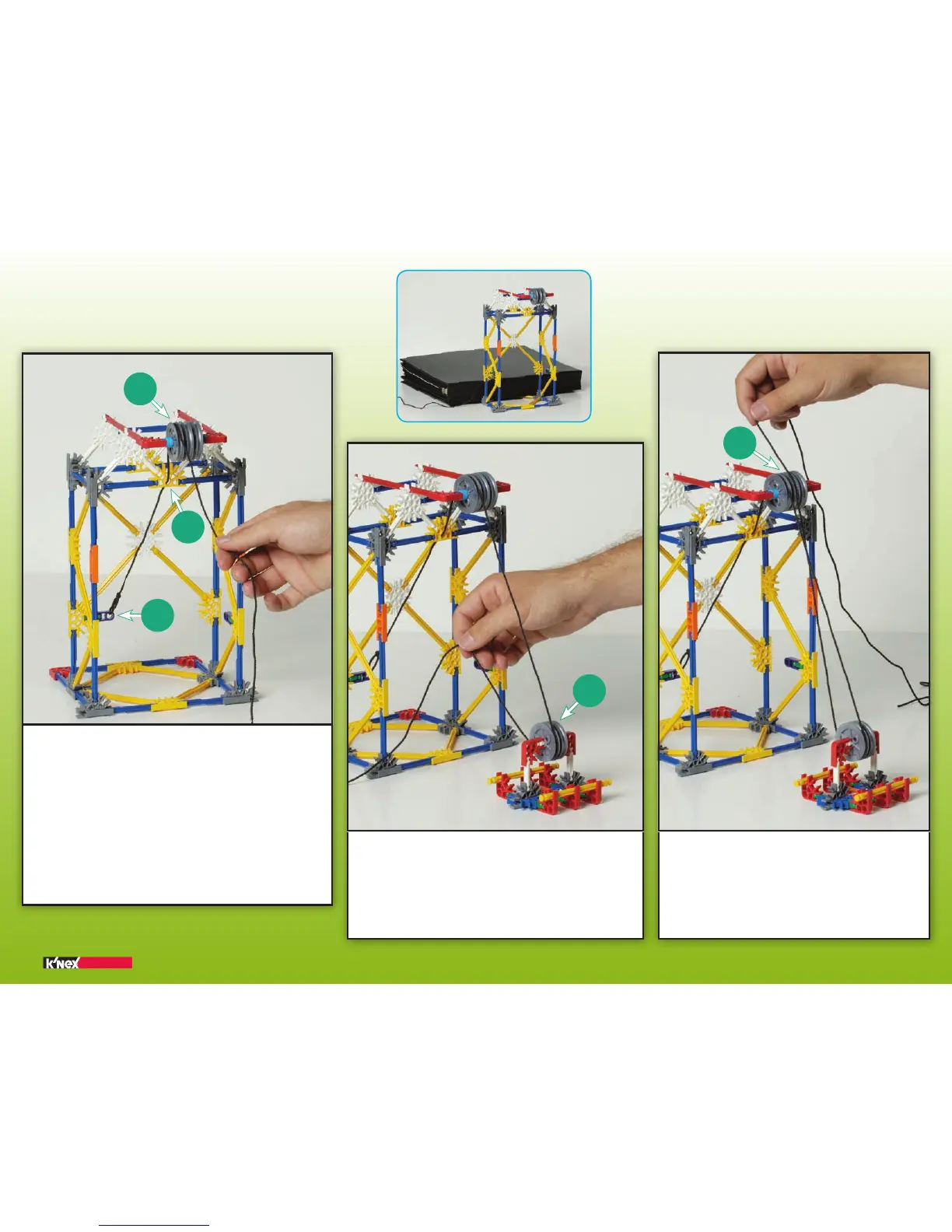 (FR) Place le fil au-dessus de la poulie du milieu.