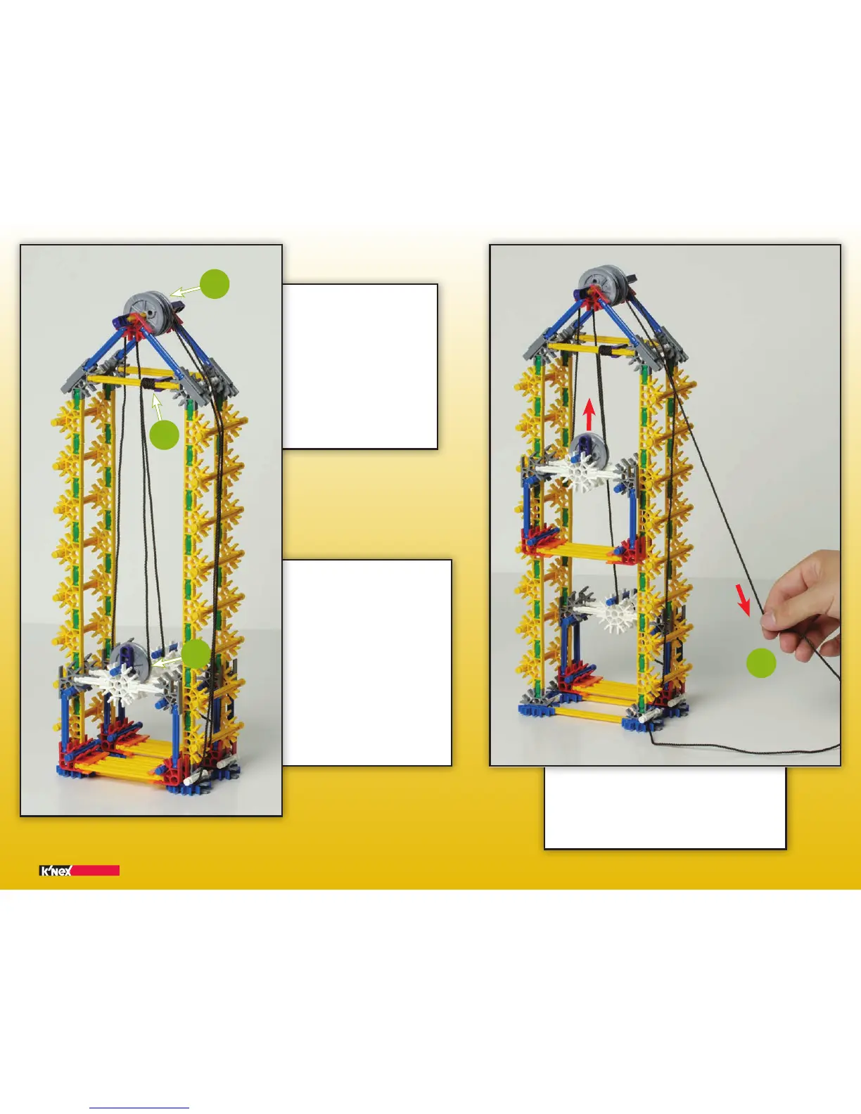 (FR) Tire sur l’un des fils pour faire monter les ascenseurs.