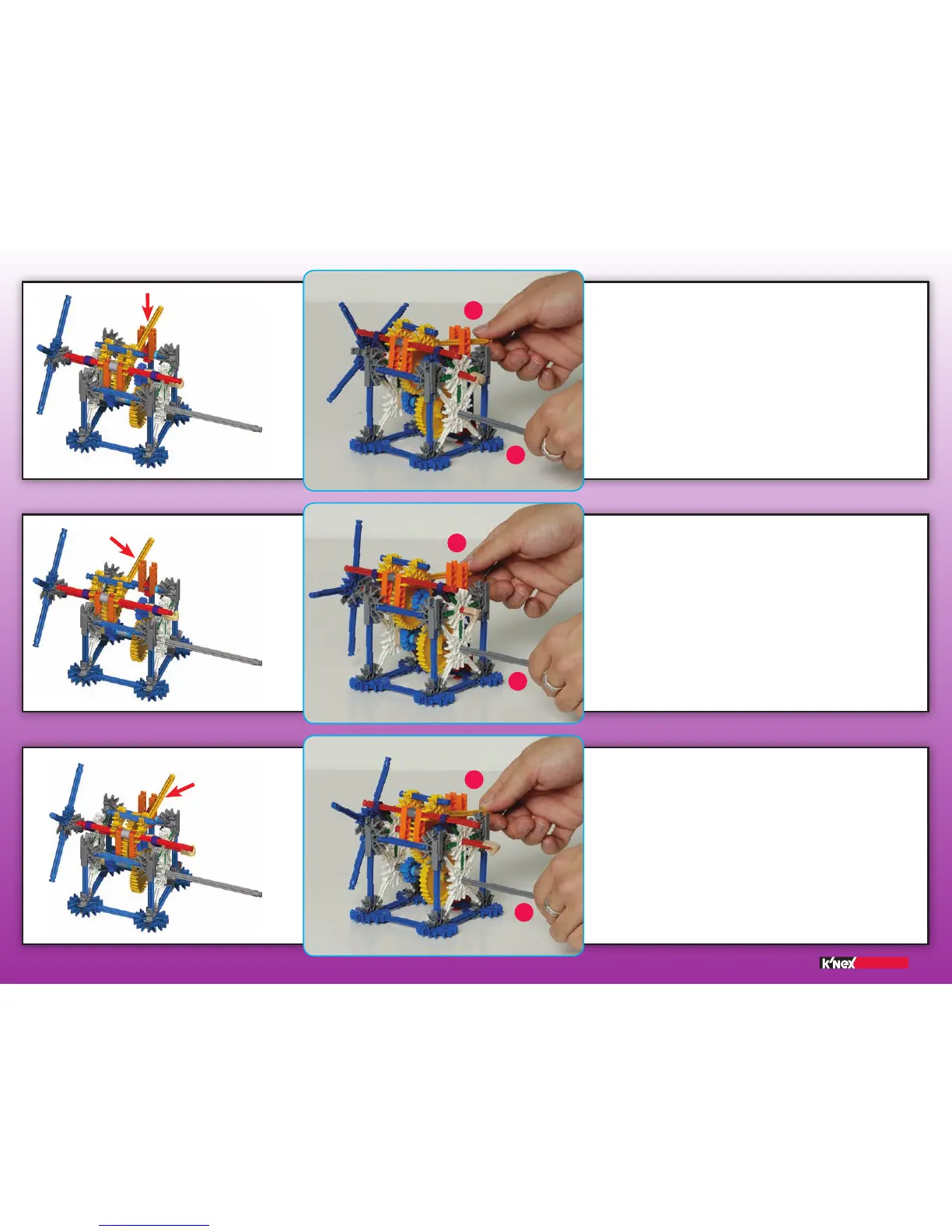 connectors for 1st gear. 2. Turn the long gray rod with one hand to see