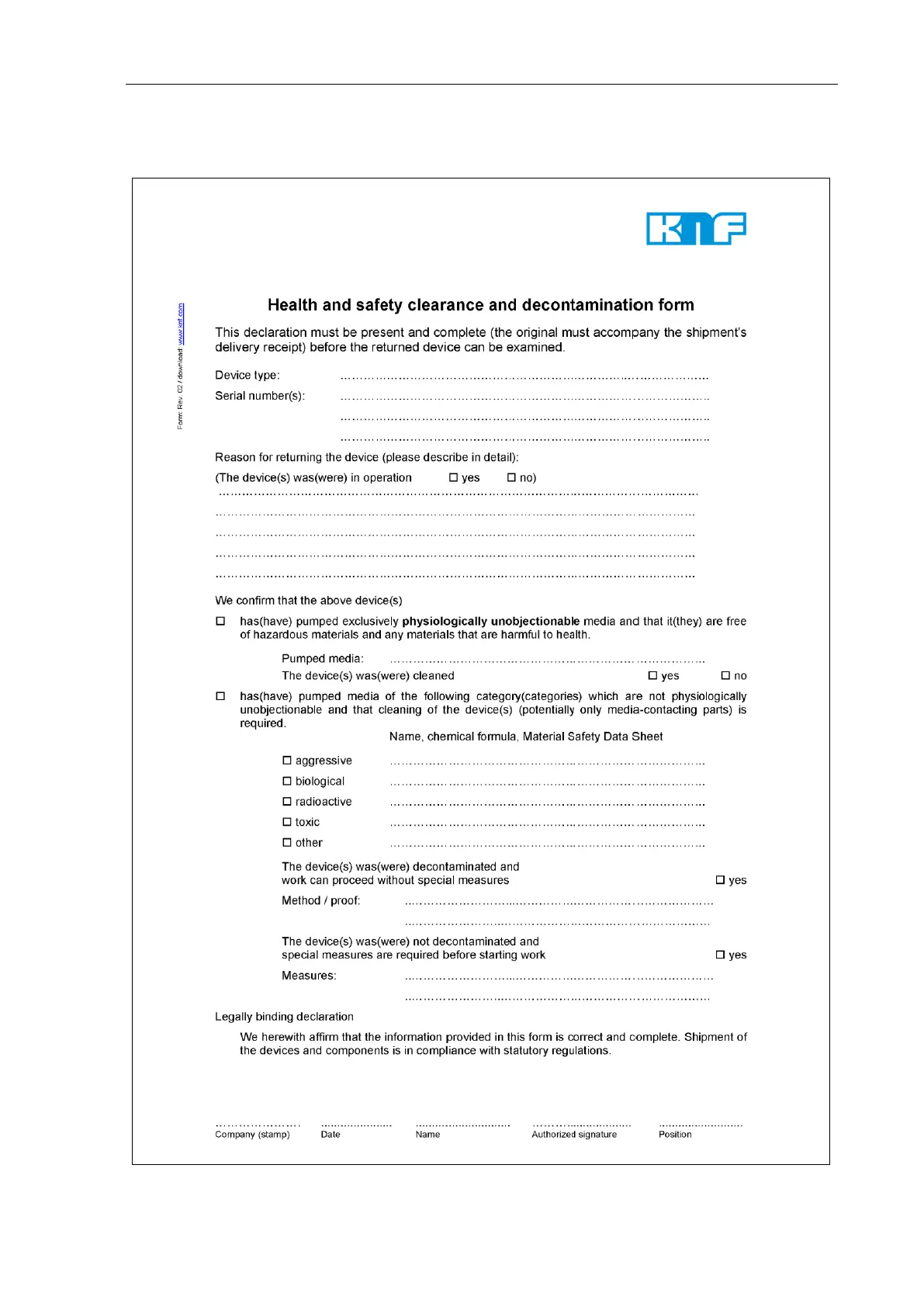 KNF N 143 AV.12 E - Health and Safety Clearance and Decontamination Form