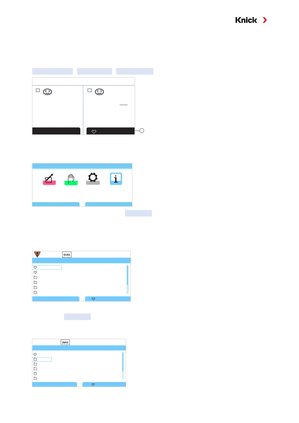 Diagnostic functions can be accessed directly from measuring mode using the right softkey. For this