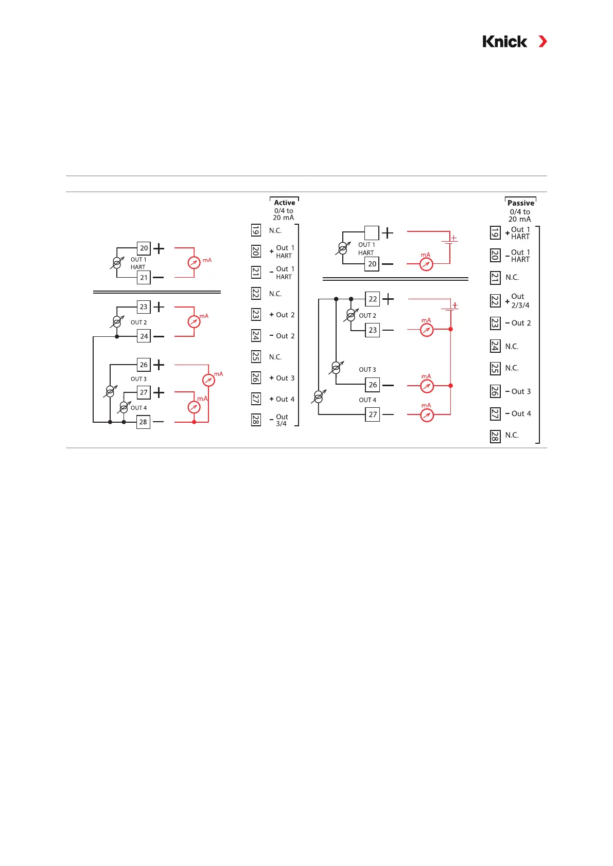 The current outputs directly supply current (0/4 ... 20 mA) to a load according to the selected process