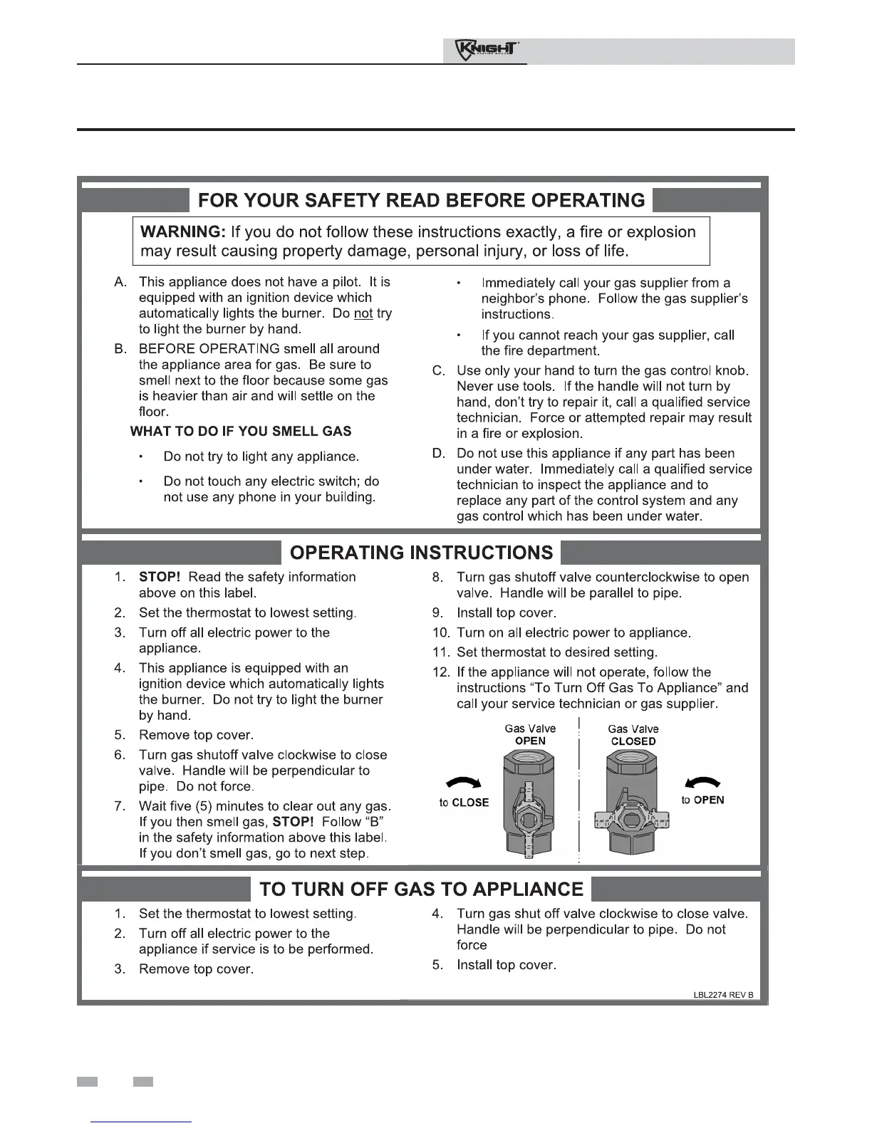 Other manuals for Knight 80