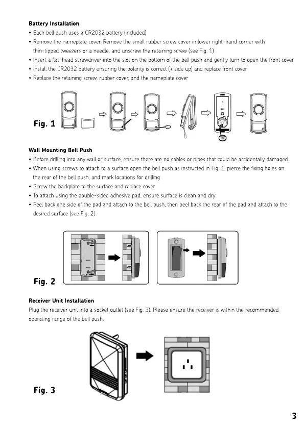 Plug the receiver unit into a socket outlet (see Fig. 3). Please ensure the receiver is within the
