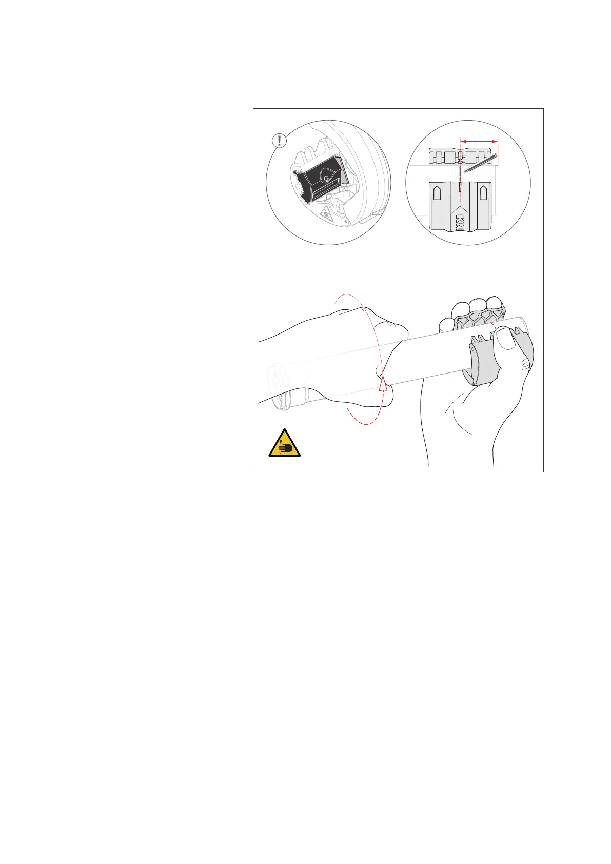 » Turn the pipe at least twice in the direction of rotation (arrow) in the