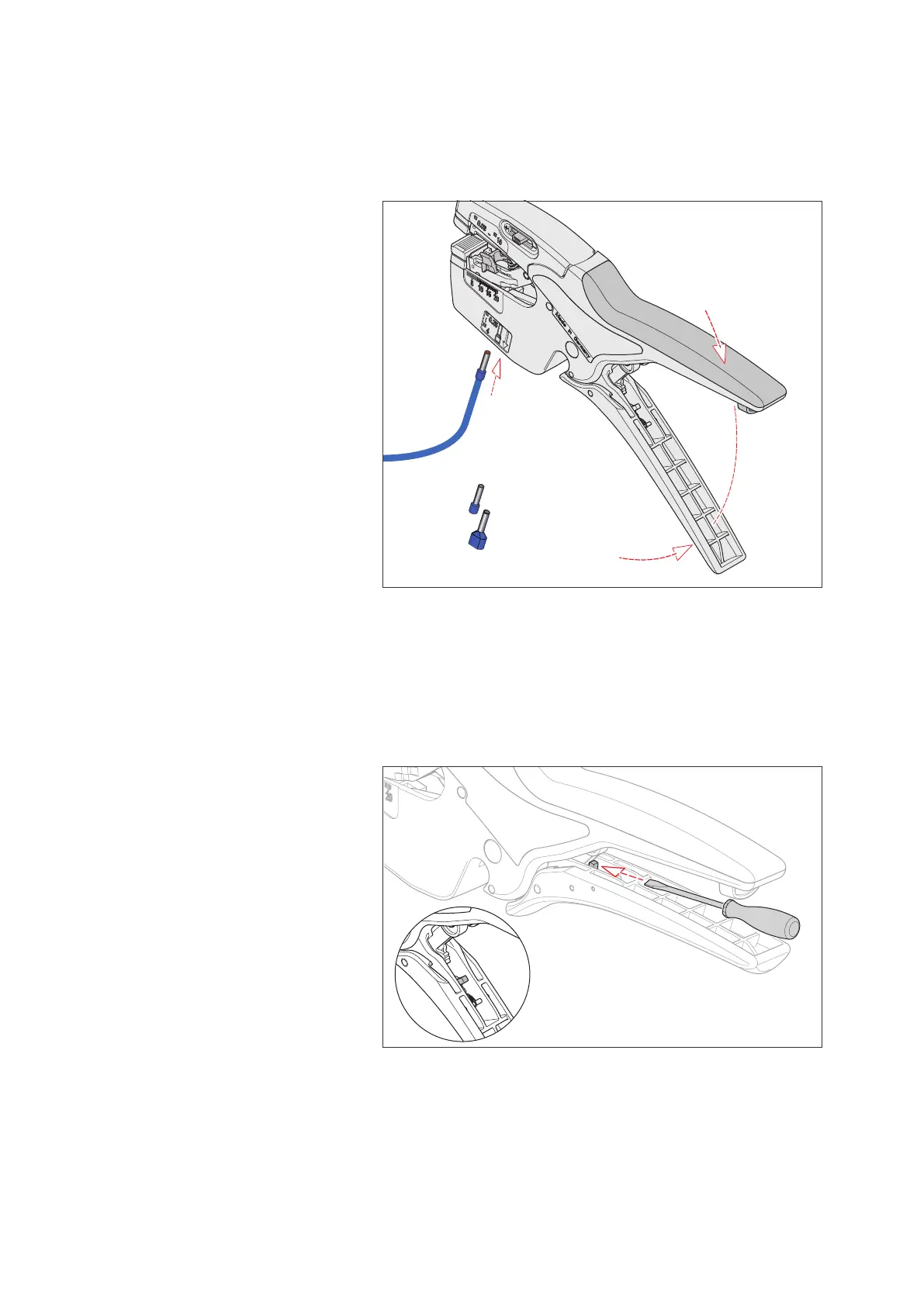 1. Insert the wire ferrule and the cable into the crimping die from below.