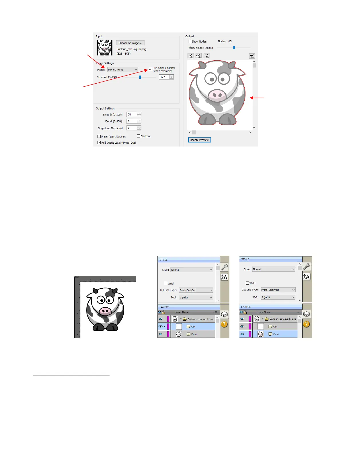 and the Layers Panel will indicate which layer is the Print and which is the Cut. Note that on the Style