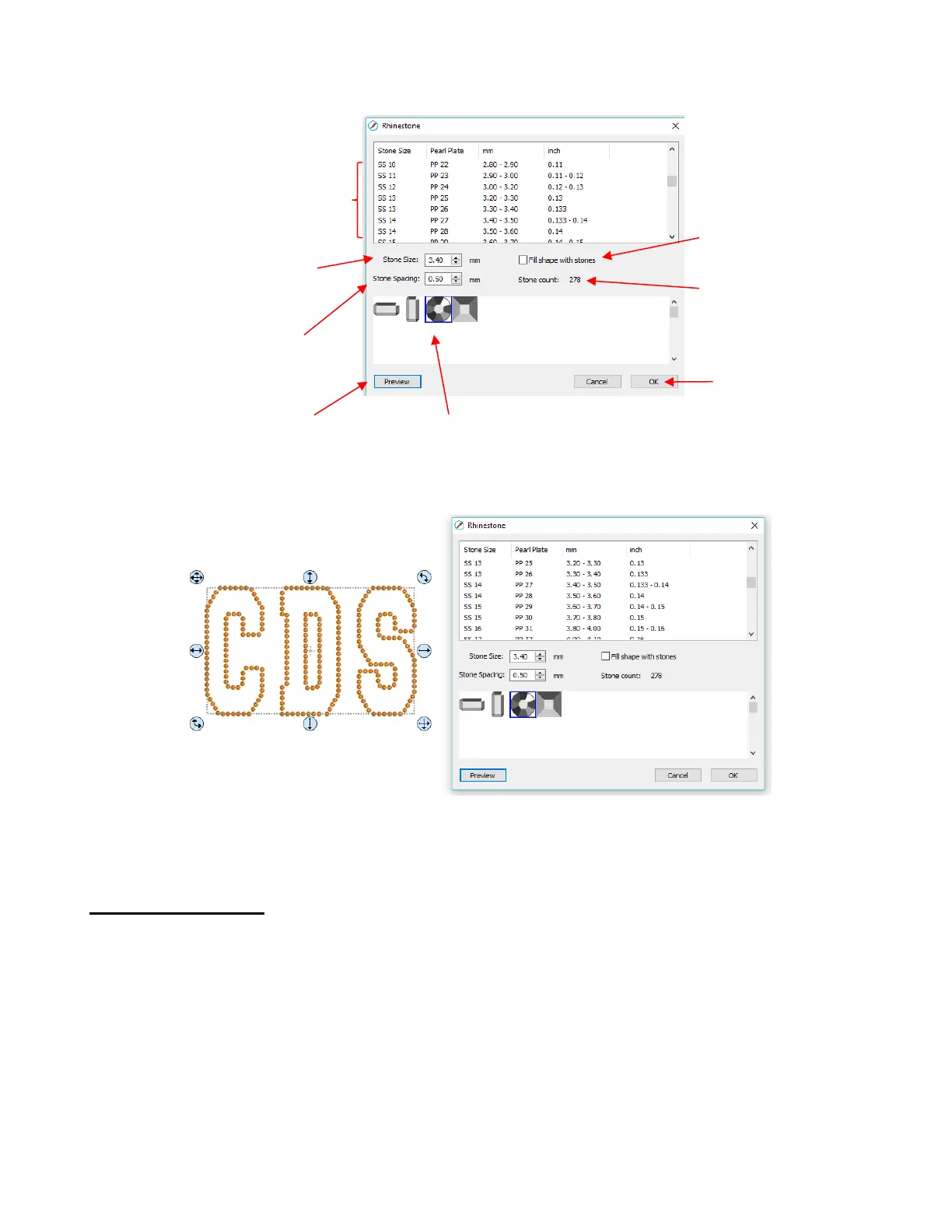 Another option in the Rhinestone window is Fill shape with stones. Instead of outlining the shape, the