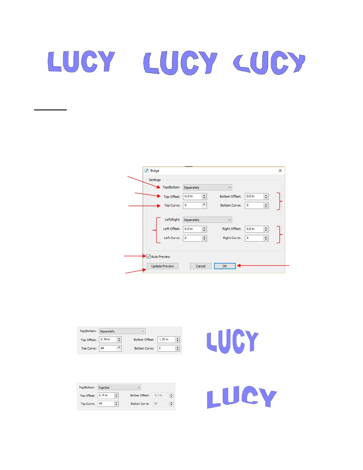 In the top portion of the window are settings for applying Bulge to the top or bottom of a shape. The