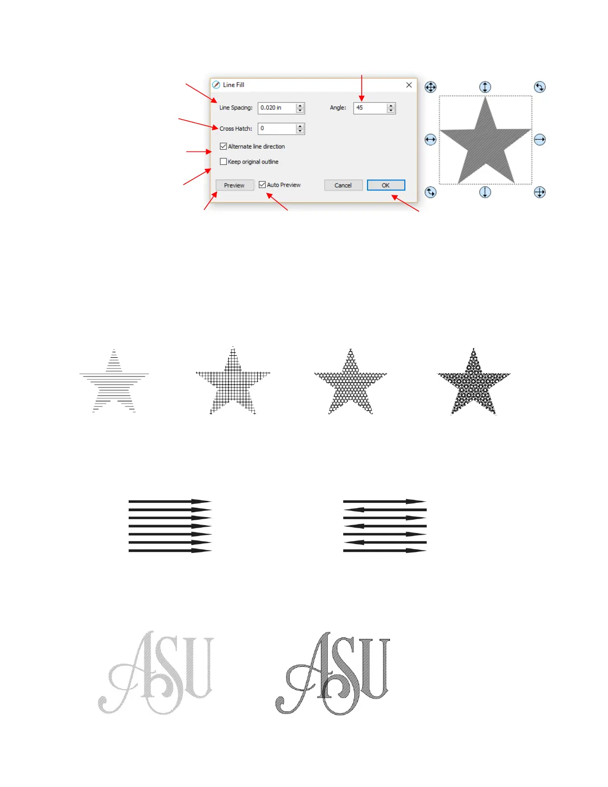 Angle: Choose an angle for the Line Fill. An Angle of 0 results in horizontal lines and an Angle of 90