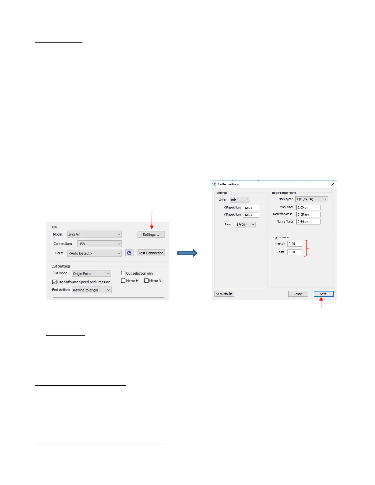 Settings button near the top of the Cut Settings window. These defaults can be made larger or smaller