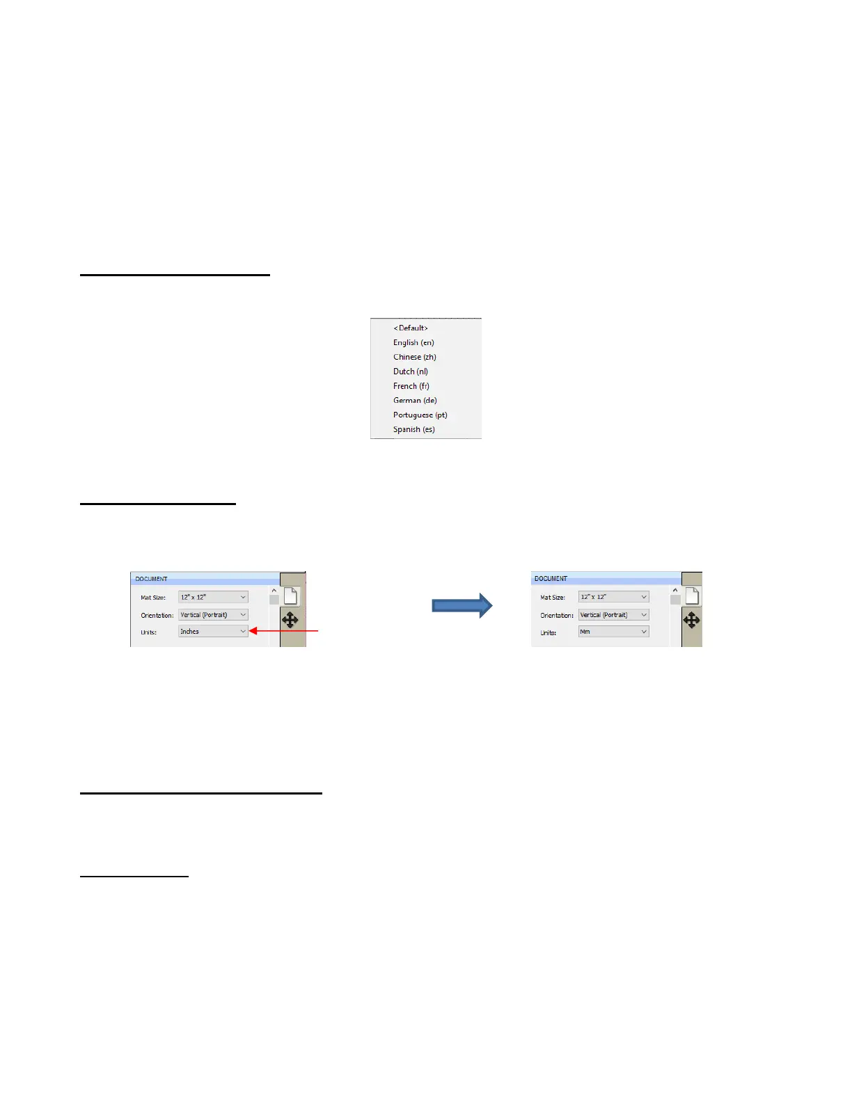 By default, the unit setting is in inches. To switch to mm or cm, click on the drop-down menu next to Units