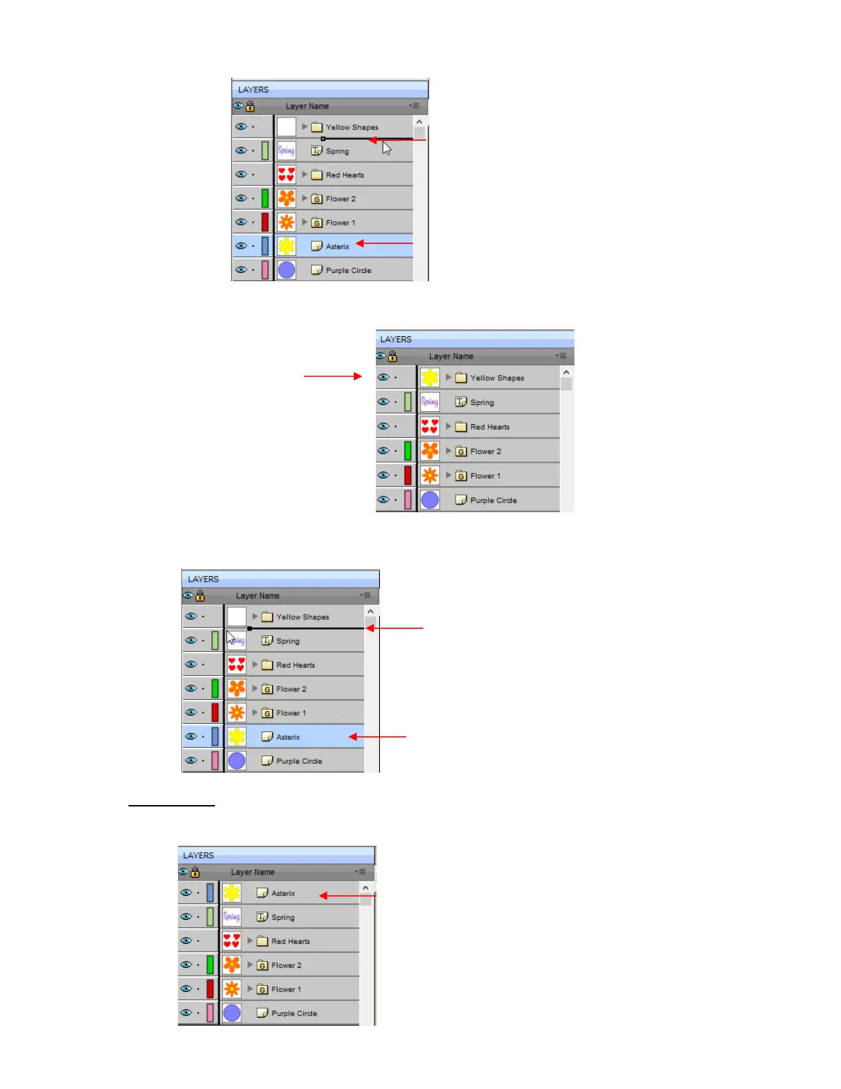 layer had been simply relocated, the Yellow Shapes folder would then be gone: