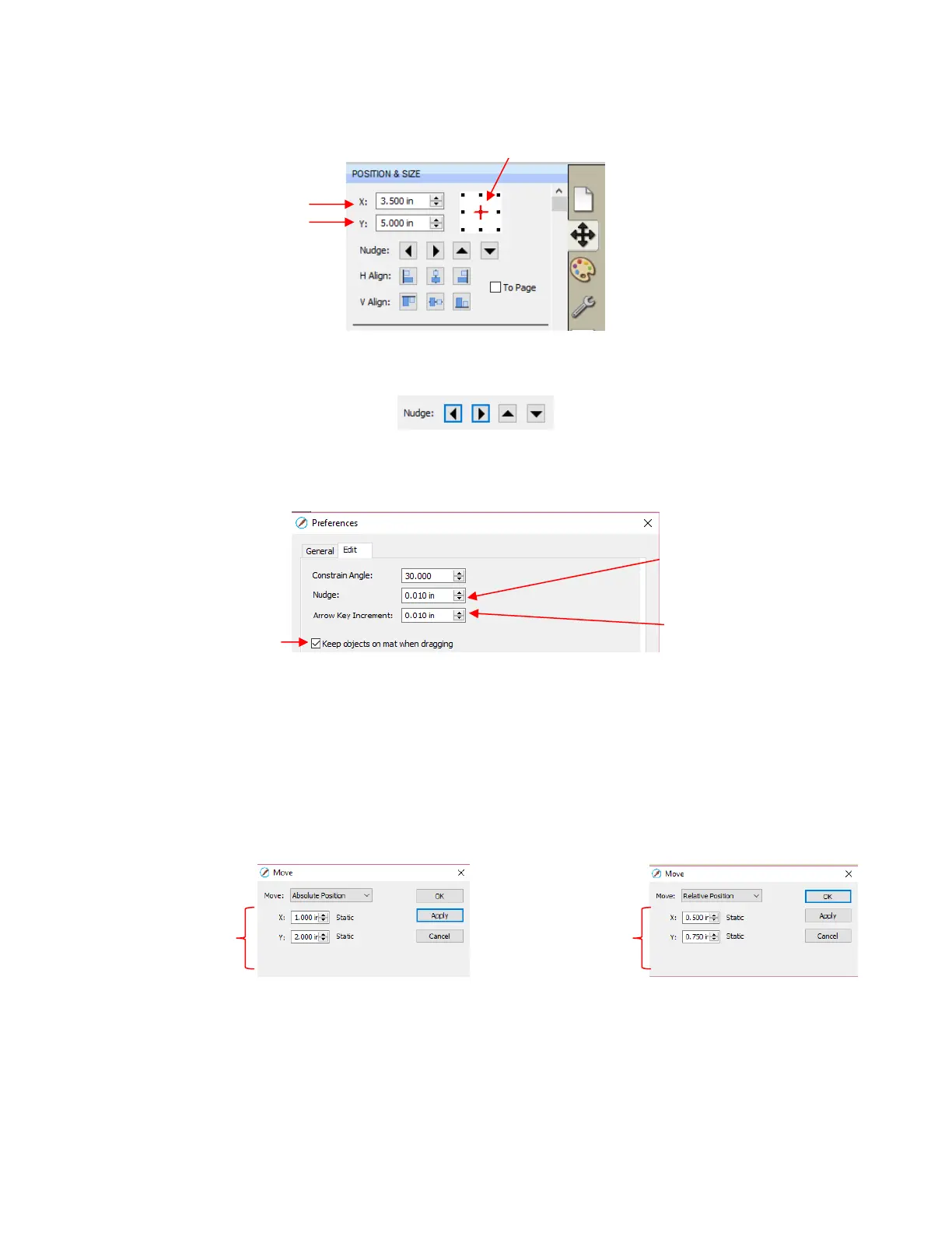 remain within the boundaries of the Cutting Mat while being moved with the mouse: