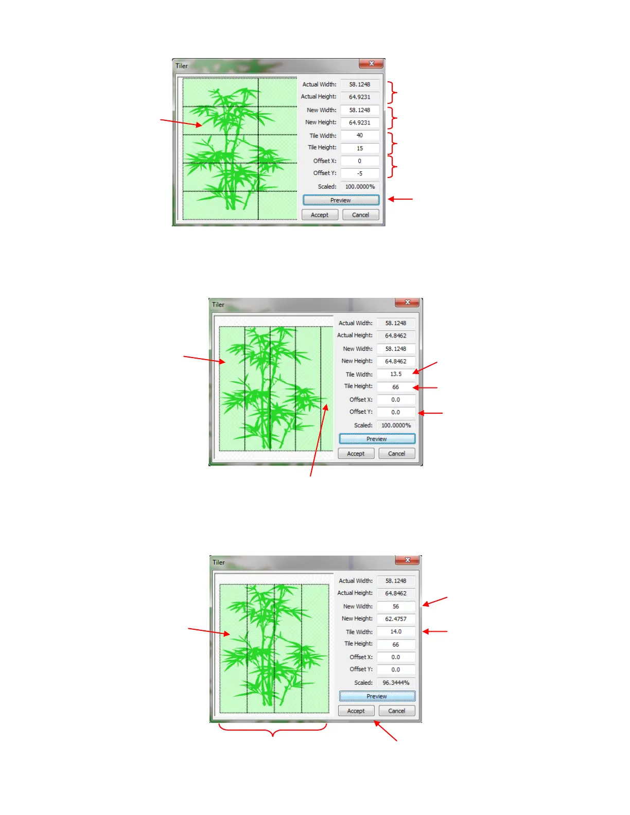 slightly smaller, 2. The Tile Width could be made slightly larger, or 3. A combination of both:
