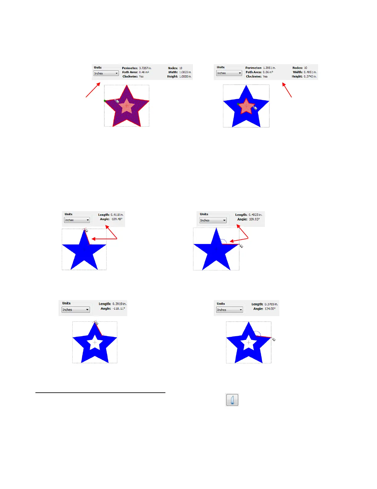 To measure an angle, place the cursor at the point where the two sides of the star meet and drag outwards